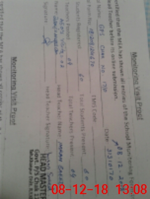 | Attendance Register | Head Teacher | MEA with School | Visit Proof |