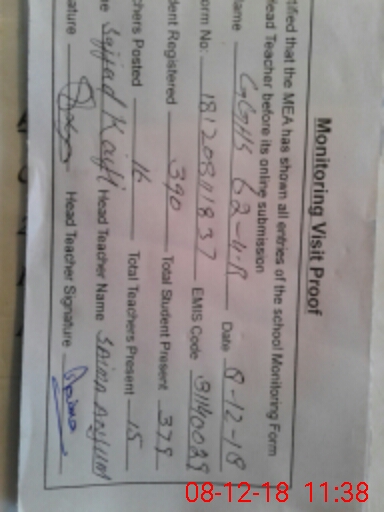 | Certified that this School was Inspected by the Undersigned MEA/DMO Today and the Information Stated Above is as Per Record. | |||||