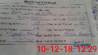 | Monitoring Date: 10-12-2018 | Start Time: 10-12-2018 12:00 PM | End Time: 10-12-2018 12:33 PM | Name of MEA: Ma**** Ah**** BN**** 20 | |