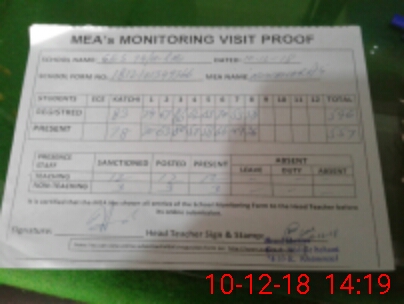 | Attendance Register | Head Teacher | MEA with School | Visit Proof |