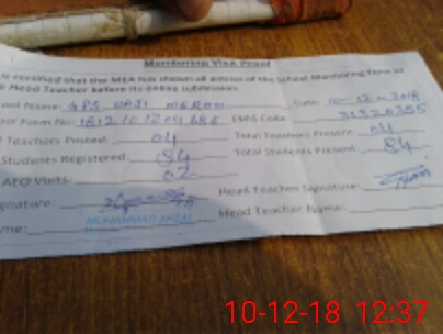 | Attendance Register | Head Teacher | MEA with School | Visit Proof |