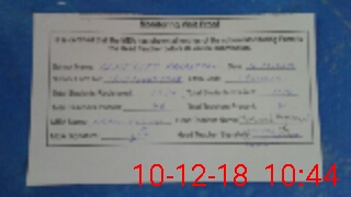 | Attendance Register | Head Teacher | MEA with School | Visit Proof |
