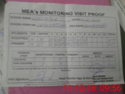| Certified that this School was Inspected by the Undersigned MEA/DMO Today and the Information Stated Above is as Per Record. | |||||