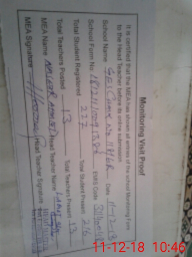 | Certified that this School was Inspected by the Undersigned MEA/DMO Today and the Information Stated Above is as Per Record. | |||||