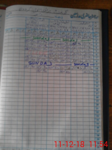 | CNIC | Full Name | Designation | R/C | Absence During Last Calender Month |