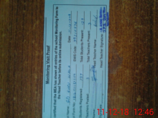 | Attendance Register | Head Teacher | MEA with School | Visit Proof |