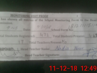 | Attendance Register | Head Teacher | MEA with School | Visit Proof |