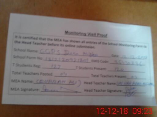 | Attendance Register | Head Teacher | MEA with School | Visit Proof |