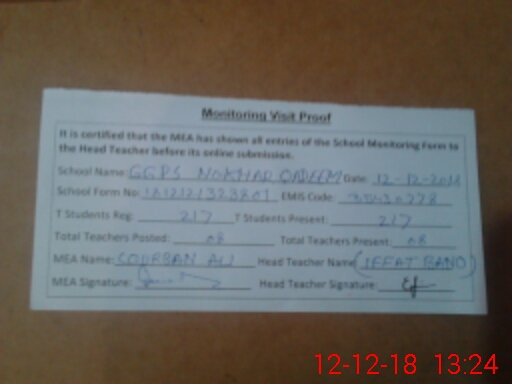 | EMIS Code: 35430778 | Name of School: GGPS NOKHER QADEEM | |||