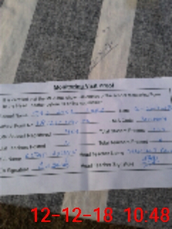| Monitoring Date: 12-12-2018 | Start Time: 12-12-2018 09:31 AM | End Time: 12-12-2018 10:49 AM | Name of MEA: Al**** Hu**** BN**** | |