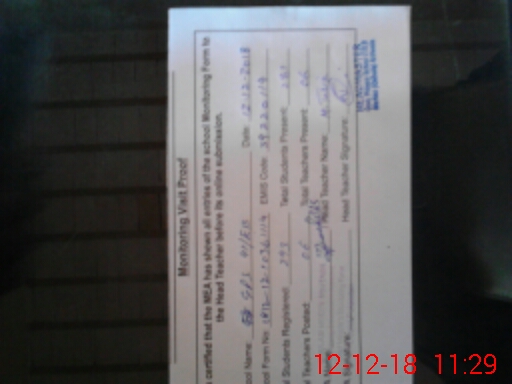 | Certified that this School was Inspected by the Undersigned MEA/DMO Today and the Information Stated Above is as Per Record. | |||||