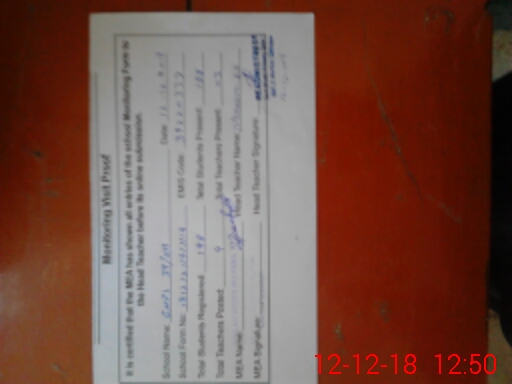 | Attendance Register | Head Teacher | MEA with School | Visit Proof |