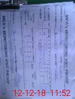 | Monitoring Date: 12-12-2018 | Start Time: 12-12-2018 10:53 AM | End Time: 12-12-2018 11:54 AM | Name of MEA: M.Is**** (S**** 03**** | |