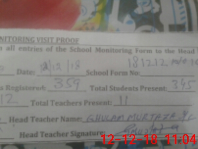 | Name: GU**** AB**** Designation: (School Headmaster's/Headmistress's) HEADMASTER Phone/Cell Number: 03**** |