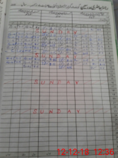 | CNIC | Full Name | Designation | R/C | Absence During Last Calender Month |