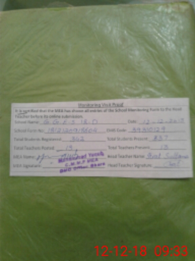 | EMIS Code: 39310129 | Name of School: GGES 18/D SHER GARH | |||