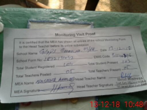 | Certified that this School was Inspected by the Undersigned MEA/DMO Today and the Information Stated Above is as Per Record. | |||||