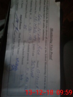 | Attendance Register | Head Teacher | MEA with School | Visit Proof |
