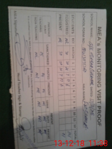 | Attendance Register | Head Teacher | MEA with School | Visit Proof |