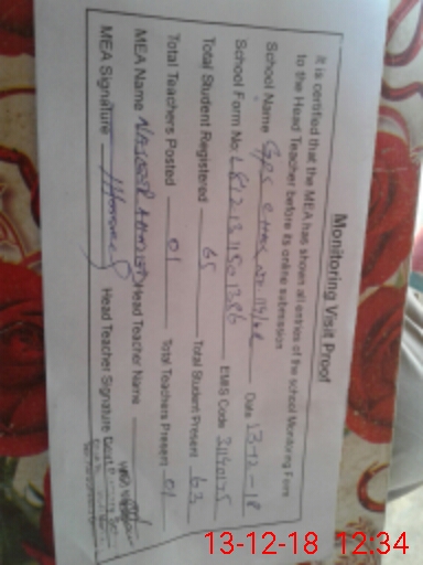 | Certified that this School was Inspected by the Undersigned MEA/DMO Today and the Information Stated Above is as Per Record. | |||||