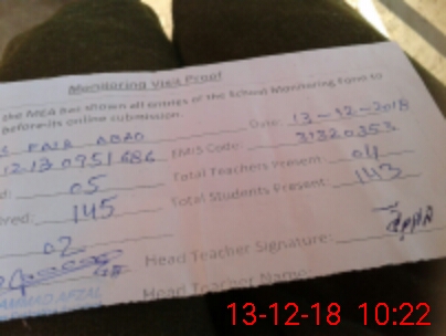 | Attendance Register | Head Teacher | MEA with School | Visit Proof |