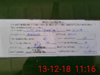 | Monitoring Date: 13-12-2018 | Start Time: 13-12-2018 10:41 AM | End Time: 13-12-2018 11:17 AM | Name of MEA: GH**** MU**** | |