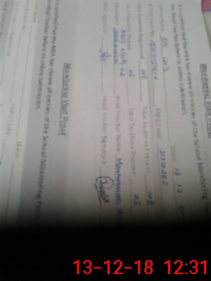 | Monitoring Date: 13-12-2018 | Start Time: 13-12-2018 11:57 AM | End Time: 13-12-2018 12:42 PM | Name of MEA: Za**** Hu**** | |