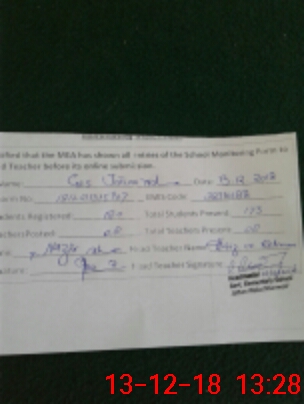 | Certified that this School was Inspected by the Undersigned MEA/DMO Today and the Information Stated Above is as Per Record. | |||||