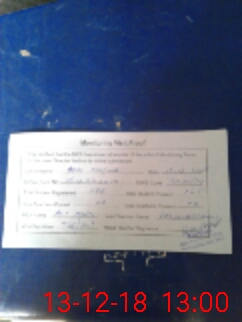 | Monitoring Date: 13-12-2018 | Start Time: 13-12-2018 12:27 PM | End Time: 13-12-2018 01:02 PM | Name of MEA: Al**** As**** BN**** 09 | |