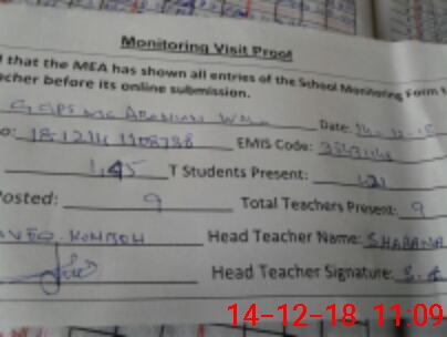 | Attendance Register | Head Teacher | MEA with School | Visit Proof |