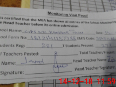 | Attendance Register | Head Teacher | MEA with School | Visit Proof |