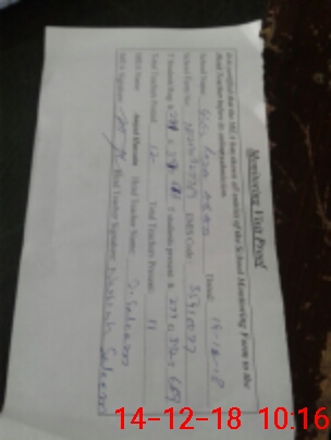| Monitoring Date: 14-12-2018 | Start Time: 14-12-2018 09:01 AM | End Time: 14-12-2018 10:16 AM | Name of MEA: Am**** Hu**** | |