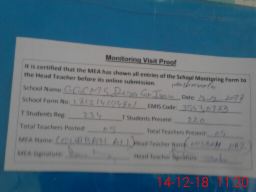 | EMIS Code: 35430783 | Name of School: GGPS DERA GUJRAN MASMOOLA BUTTAR | |||