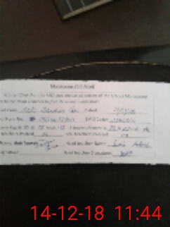 | Monitoring Date: 14-12-2018 | Start Time: 14-12-2018 11:14 AM | End Time: 14-12-2018 11:48 AM | Name of MEA: Ra**** Na**** (R**** | |