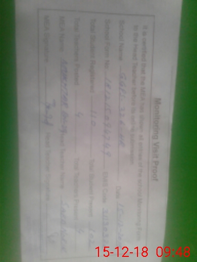 | Certified that this School was Inspected by the Undersigned MEA/DMO Today and the Information Stated Above is as Per Record. | |||||