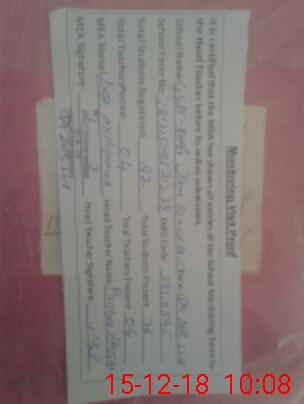 | Attendance Register | Head Teacher | MEA with School | Visit Proof |