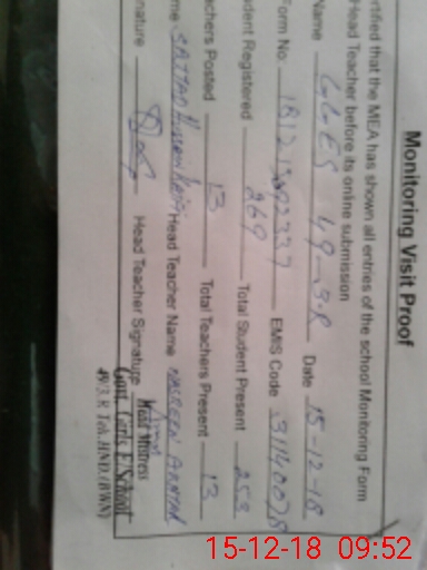 | Certified that this School was Inspected by the Undersigned MEA/DMO Today and the Information Stated Above is as Per Record. | |||||