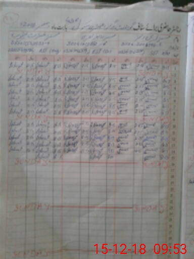 | CNIC | Full Name | Designation | R/C | Absence During Last Calender Month |