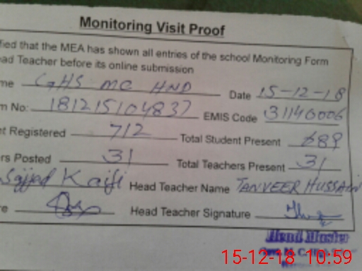 | Certified that this School was Inspected by the Undersigned MEA/DMO Today and the Information Stated Above is as Per Record. | |||||