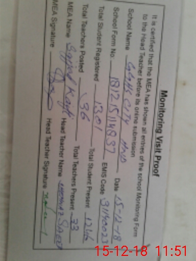 | Certified that this School was Inspected by the Undersigned MEA/DMO Today and the Information Stated Above is as Per Record. | |||||