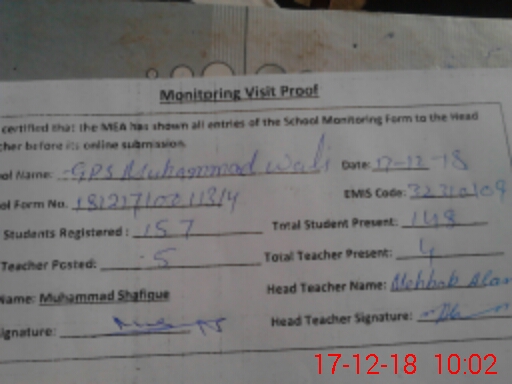 | EMIS Code: 32310109 | Name of School: GPS MUHAMMAD WALI | |||