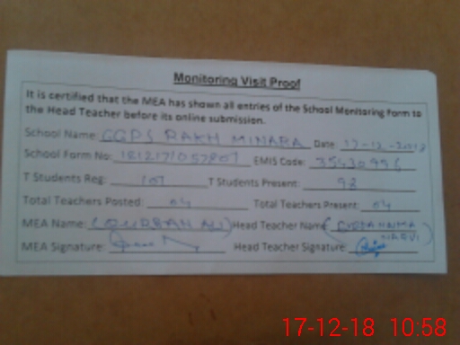 | EMIS Code: 35430996 | Name of School: GGPS RAKH MINARA | |||