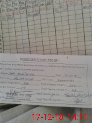 | Attendance Register | Head Teacher | MEA with School | Visit Proof |