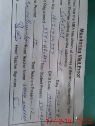 | Certified that this School was Inspected by the Undersigned MEA/DMO Today and the Information Stated Above is as Per Record. | |||||