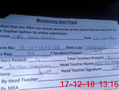 | Attendance Register | Head Teacher | MEA with School | Visit Proof |