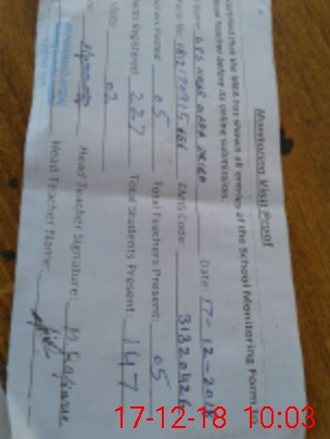 | Attendance Register | Head Teacher | MEA with School | Visit Proof |