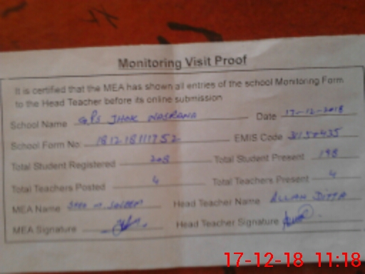 | EMIS Code: 31150435 | Name of School: GPS JHOK NASRANA | |||