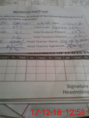 | Attendance Register | Head Teacher | MEA with School | Visit Proof |