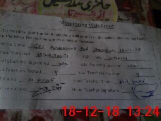 | CNIC | Full Name | Designation | R/C | Absence During Last Calender Month |
