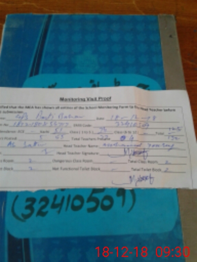 | School Visited by School Health & Nutrition Supervisor (No. of Visits) | 1 | Name1: | Khazir Hayat | Name2: | |